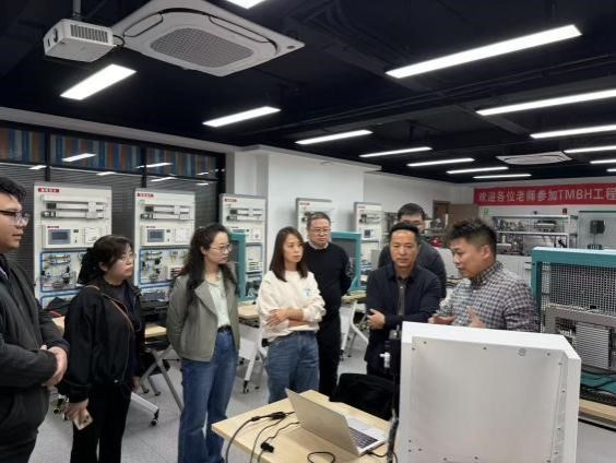 在中国智能制造挑战赛湖州基地,主要就探索激发学生内在学习动力与思维创新能力的有效策略;高职院校智能制造相关专业的建设现状与发展趋势;高职院校智能制造专业实训室的建设方案与实施路径;智能制造企业对人才的具体需求与期望进行了深入交流。特别是中国智能制造挑战赛湖州基地负责人分享的TMBH工程育人理念是一种面向未来的新工程师综合能力培养模式,强调培养具备这四个领域背景知识的复合型人才,以支撑智能制造领域的发展。这一理念为我院育人模式提供了一种发展新思路。