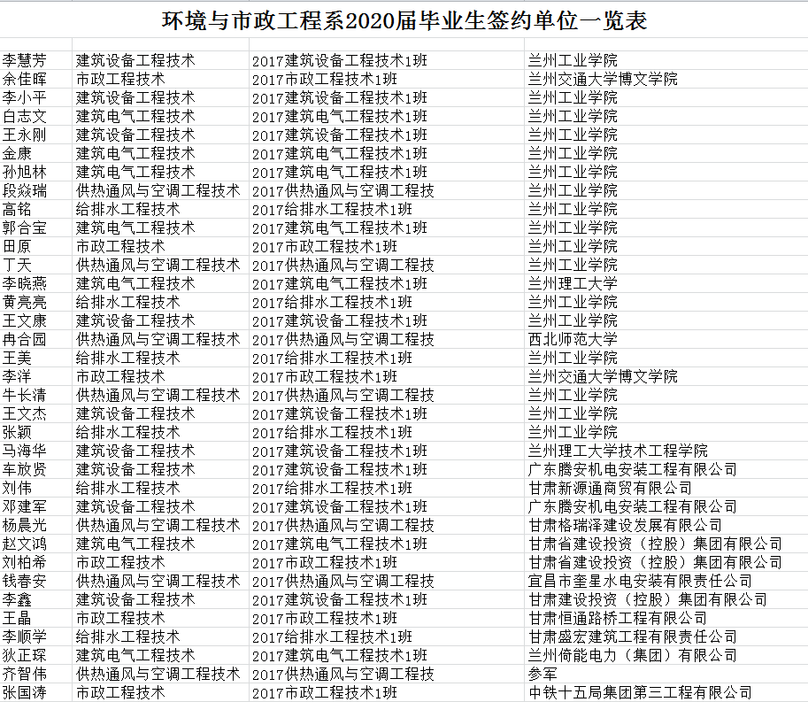 环境与市政工程系招生就业工作始终坚持为学生服务为宗旨,加强与企业的沟通和联系,努力拓宽就业渠道,顺利完成了2020届毕业生就业创业工作。