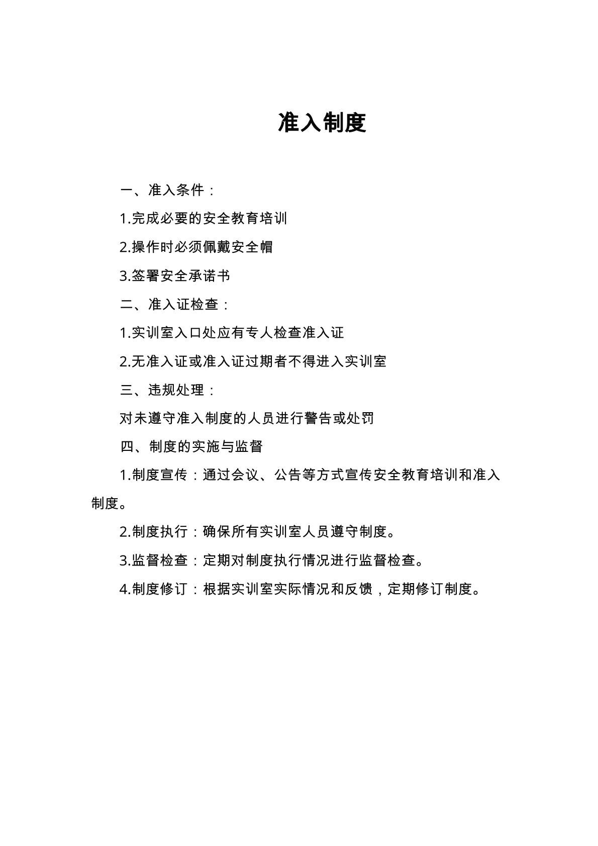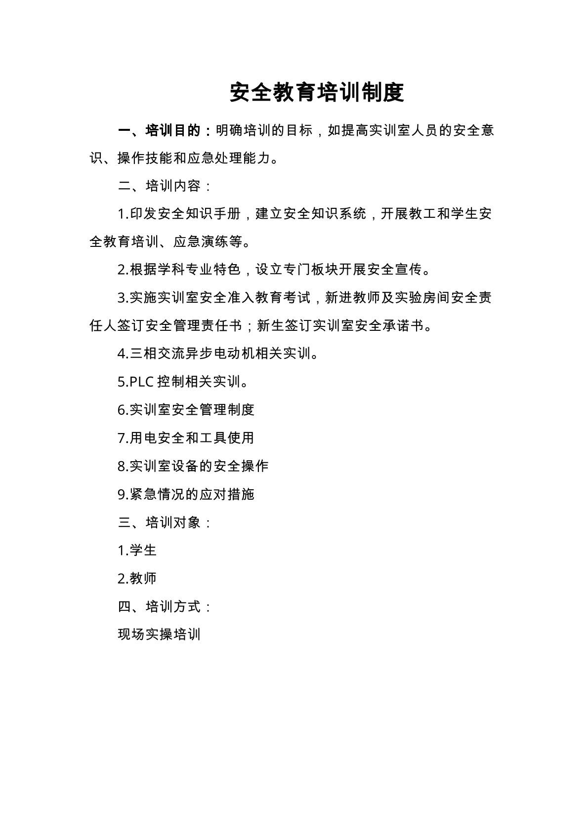 电气实训室--安全教育培训制度、准入制度