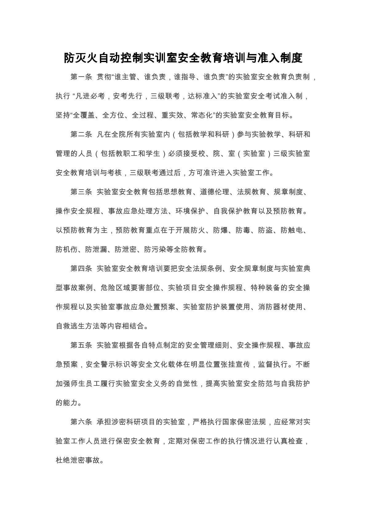 防灭火自动控制实训室--安全教育培训与准入制度