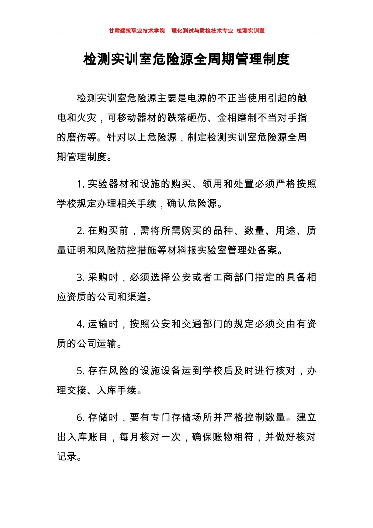 检测实训室--危险源全周期管理制度