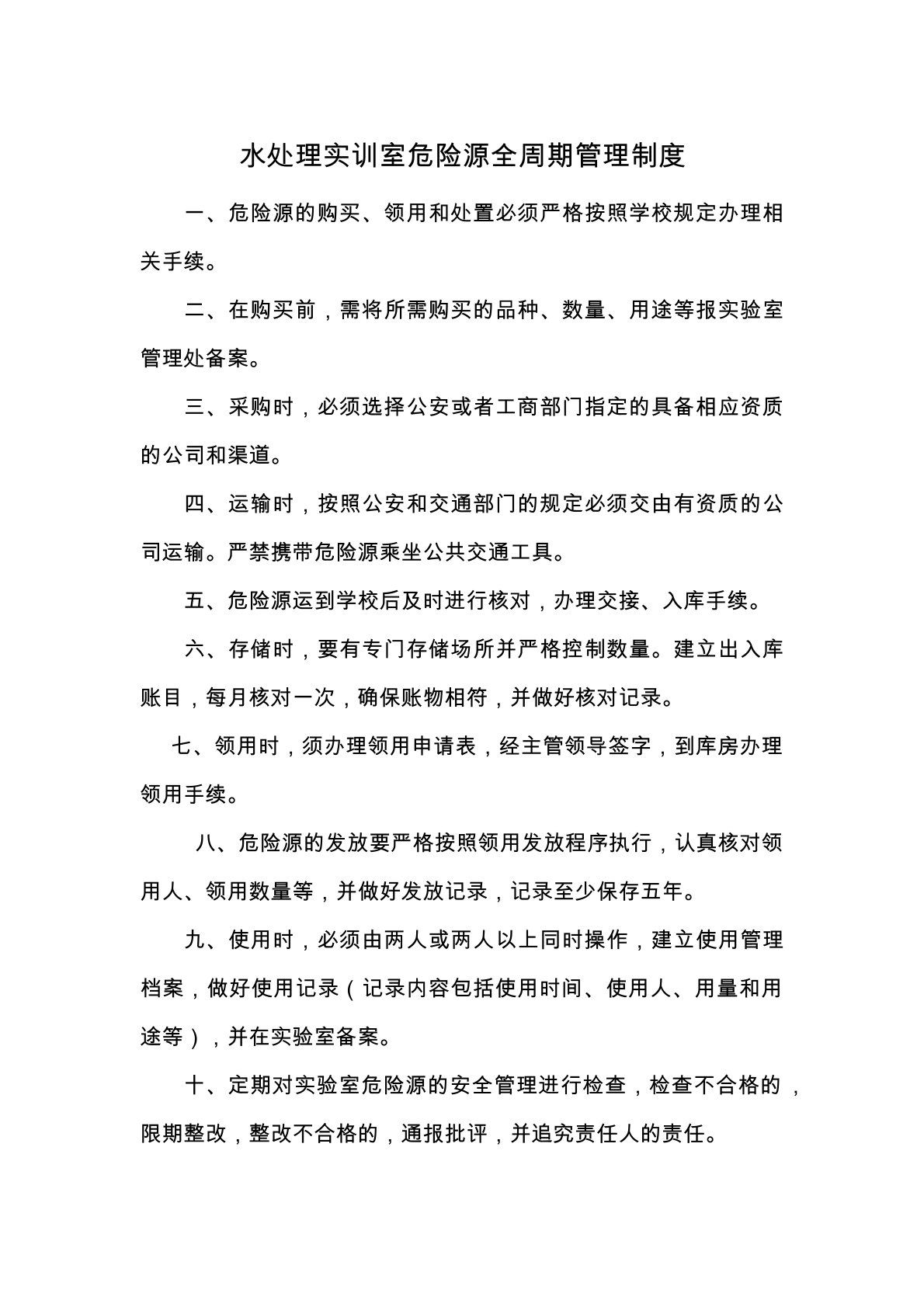 水处理实验室--危险源全周期管理制度