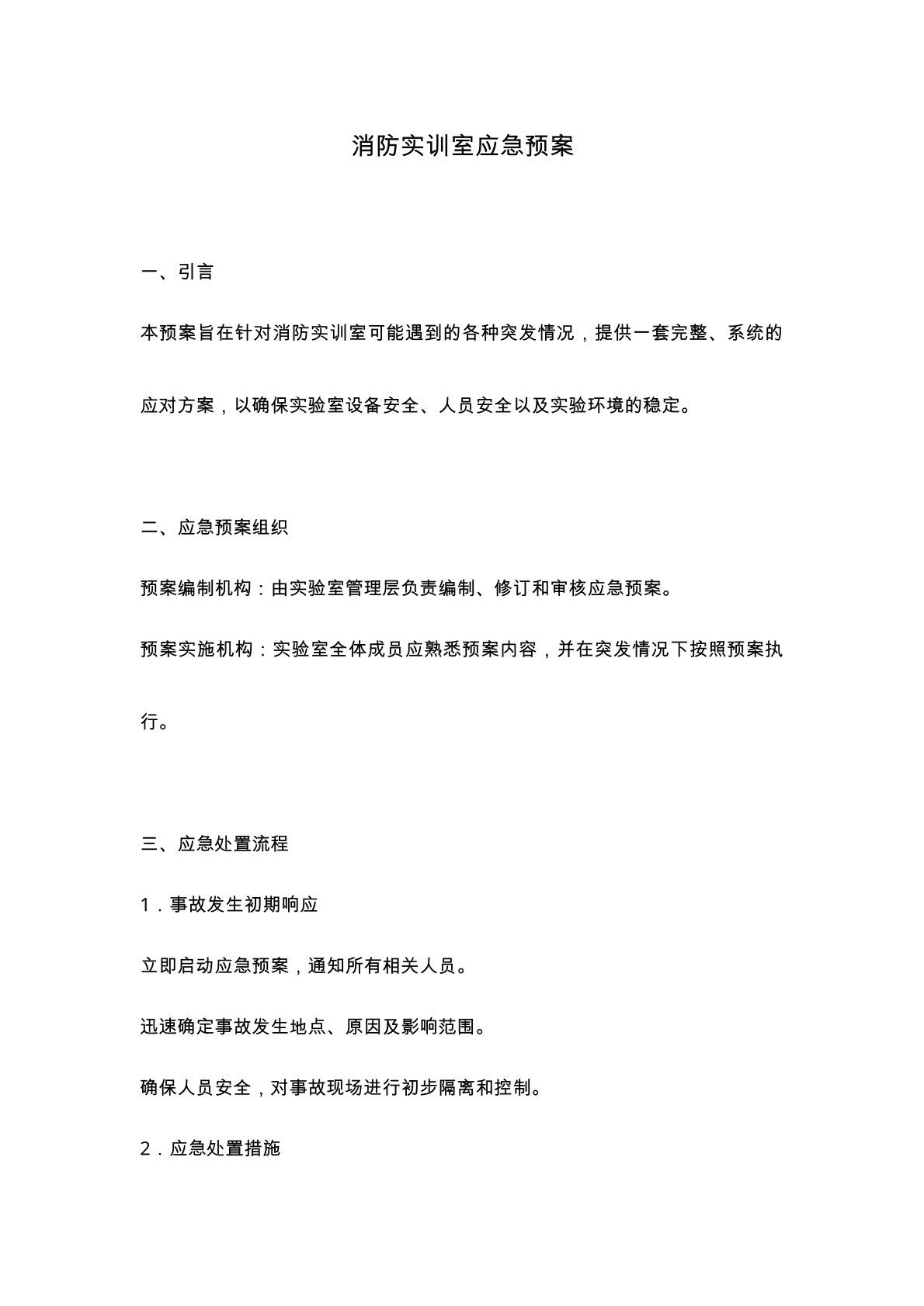 消防实训室--应急预案