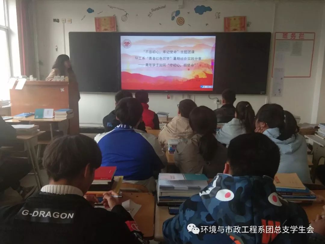 2019年11月6日下午,我系团总支、学生会全体干部以及各班团支部书记、组织委员、宣传委员等30多人在4-4市政班教室开展了关于“不忘初心,牢记使命”主题团课,本次团课由团总支书记曹颖老师主讲。