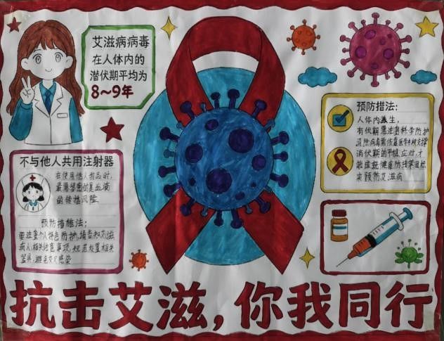 本次活动形式丰富多元,兼顾知识性与趣味性。前期,各班级踊跃提交防艾主题A3手抄报,同学们以画笔为媒,将防艾知识、反歧视理念融入创意设计,一幅幅作品成为校园里鲜活的防艾宣传载体。