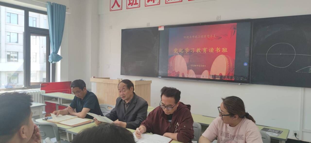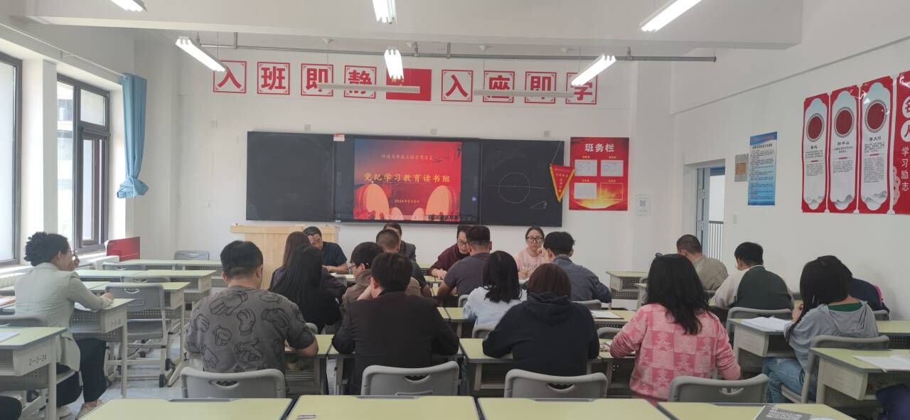 2024年5月9日上午,环境与市政工程系党总支组织全体党员开展了党纪学习教育党员读书班第三次集体学习。由邱琴忠同志领学了《中国共产党纪律处分条例》第八、九章内容。