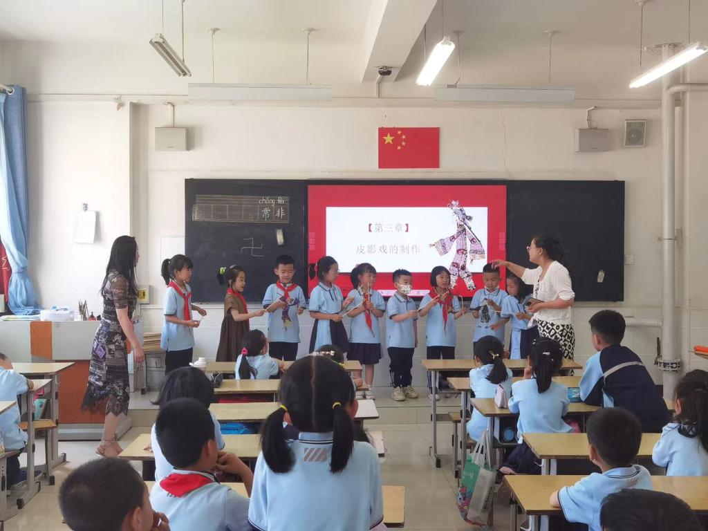 2023年6月14日,环境与市政工程系党总支下属弘古轩工作室王菲、张文琴老师前往一只船小学,送上“非遗小课堂”第二节授课内容——“皮影戏”和弘古轩工作室代表性非物质文化遗产项目——元宵节(永昌县卍字灯俗)。