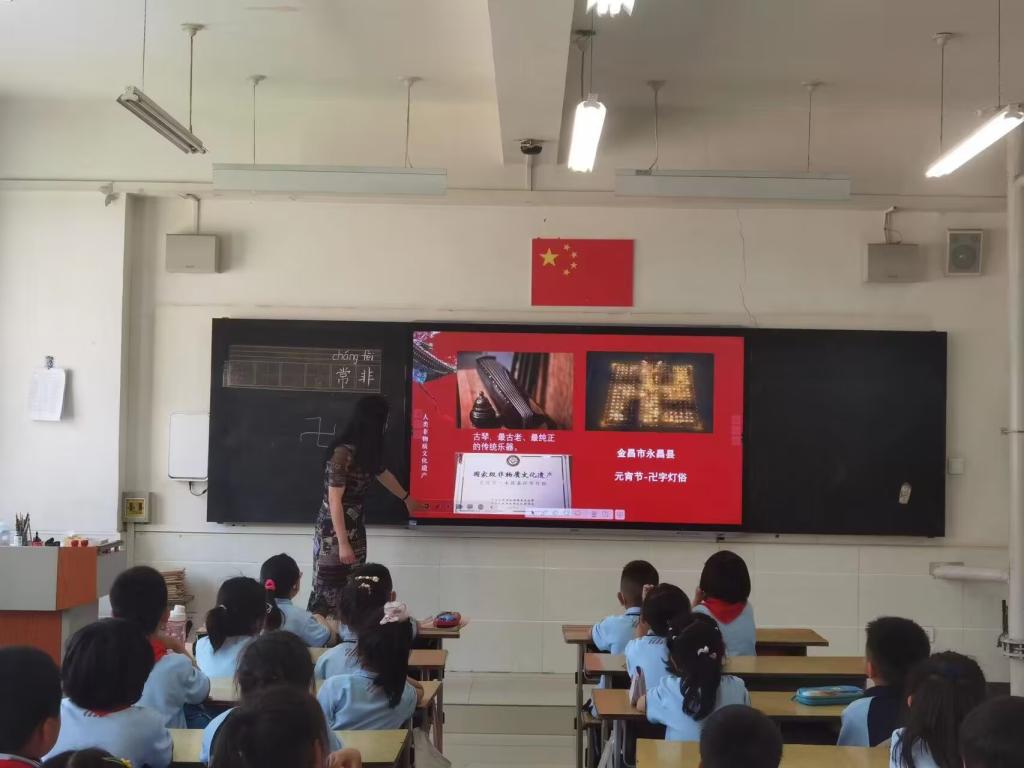 课堂上,主讲人张文琴老师用图片和视频为小同学们展示了非物质文化遗产及保护的相关知识与措施,用互动的方式帮助他们了解了皮影戏和永昌县卍字灯俗的相关知识,与小同学们开展互动,取得了良好的收效。