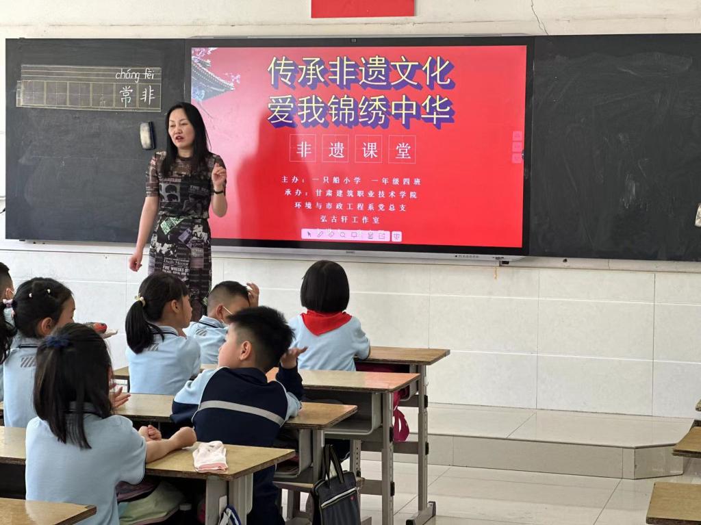 为进一步加强中国文化遗产保护,继承和弘扬中华民族优秀传统文化,推进社会主义先进文化建设,发挥党组织和党员在教育领域的引领作用,环境与市政工程系党总支、系属弘古轩工作室,受邀再次前往一只船小学一年级四班承办“非遗小课堂”活动。