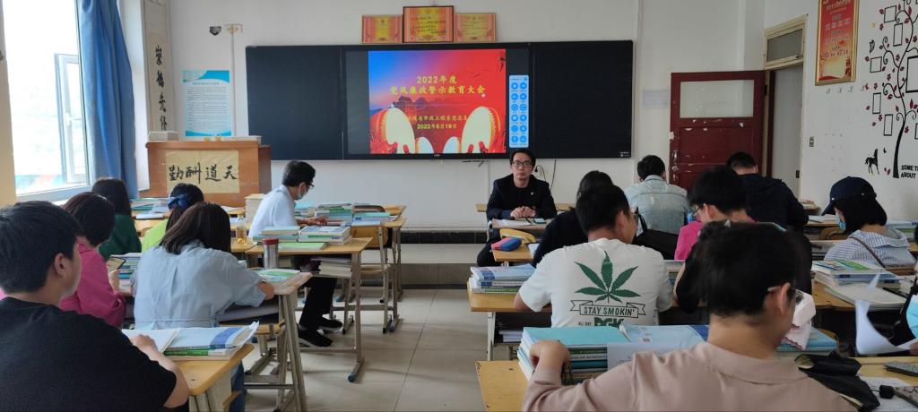 2022年5月19日星期四,环境与市政工程系在2号楼4-9教室召开了2022年度主题为持续推进党风廉政、作风建设和师德师风建设,推进全面从严治党向纵深发展的警示教育大会,会议由系党总支书记王亮主持,环工系全体党员、发展对象代表、积极分子代表参会。