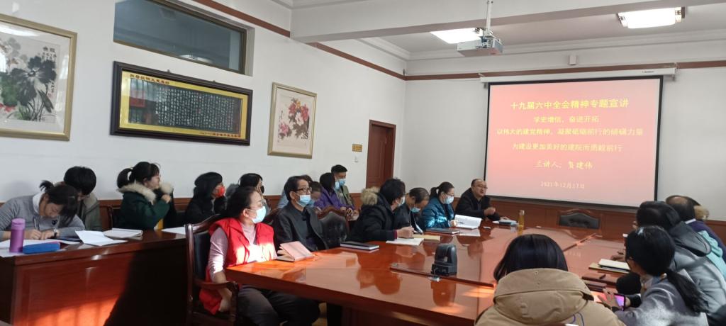 2021年12月17日环工系全体党员聆听了贺建伟书记关于十九届六中全会的专题讲座:《学史增信,奋进开拓 以伟大的建党精神,凝聚砥砺前行的磅礴力量,为建设更加美好的建院而勇毅前行》。