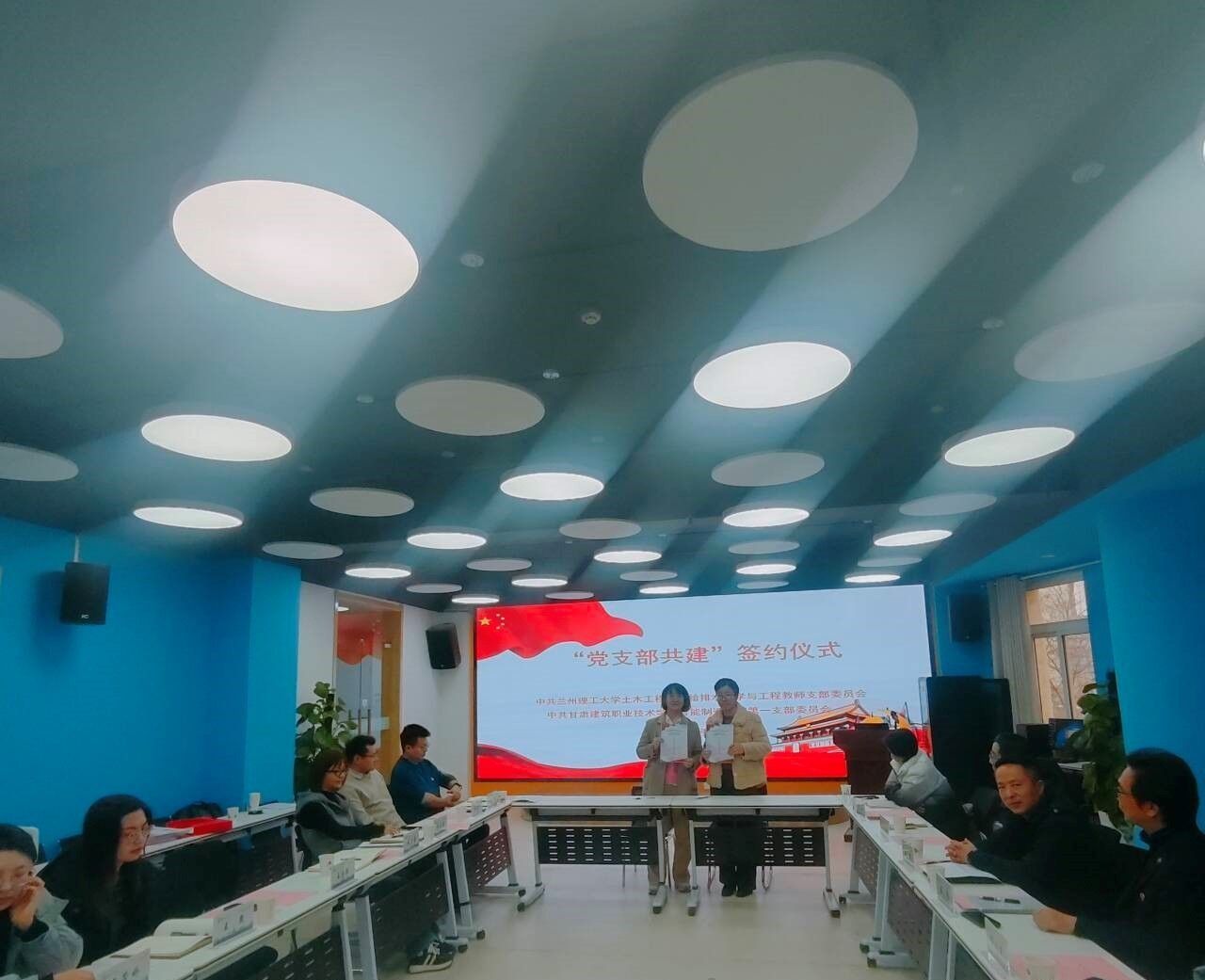 为了深入学习贯彻党的二十届三中全会精神、全国教育大会精神,进一步夯实党建工作基础,增进兄弟院校支部间学习交流,加强组织联建,以共建为契机,促进党建与业务工作深度融合,2024年12月18日下午,兰州理工大学土木工程学院给排水科学与工程教师党支部,甘肃建筑职业技术学院智能制造学院第一党支部开展了“人水和谐,党旗红”支部共建主题党日活动,2个支部共20名党员参加。