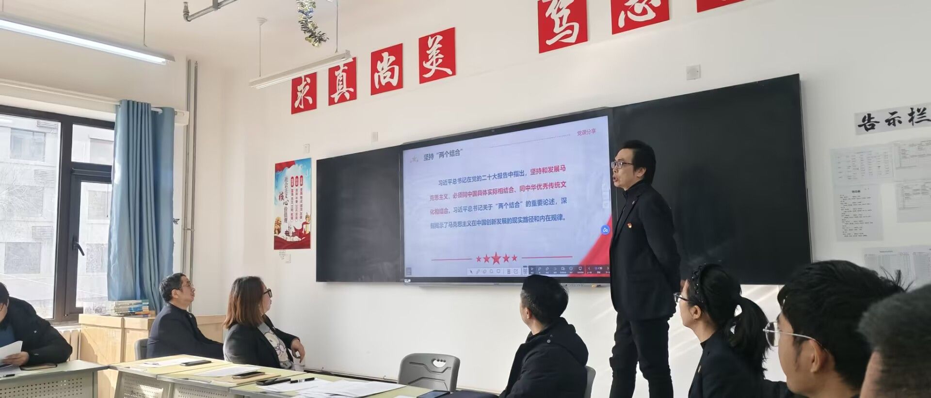 随后,王亮同志解读了“两个结合”的重要意义,指出“两个结合”是在五千多年中华文明深厚基础上开辟和发展中国特色社会主义的必由之路,是我们取得成功的最大法宝。把马克思主义基本原理同中国具体实际、同中华优秀传统文化相结合,实现了“马克思主义基本原理”与“中国具体实际”“中华优秀传统文化”之间的双向良性互动。